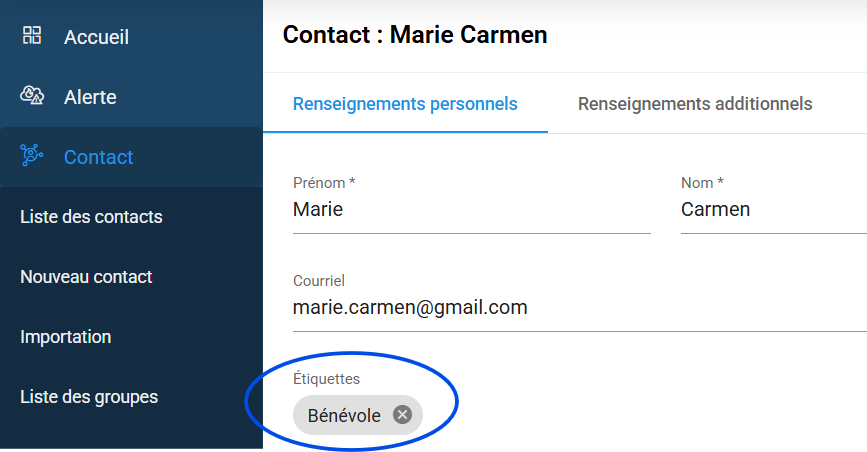 Les étiquettes permettent d’identifier un contact selon un ou plusieurs critères spécifiques.