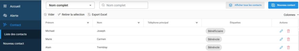 Exemples d’étiquettes : bénévole, employé, bénéficiaire.