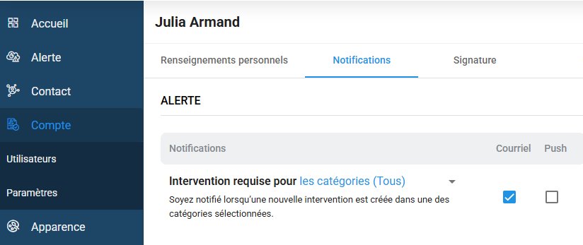 L’utilisateur qui sera notifié en cas d’intervention requise peut recevoir trois types de notifications :